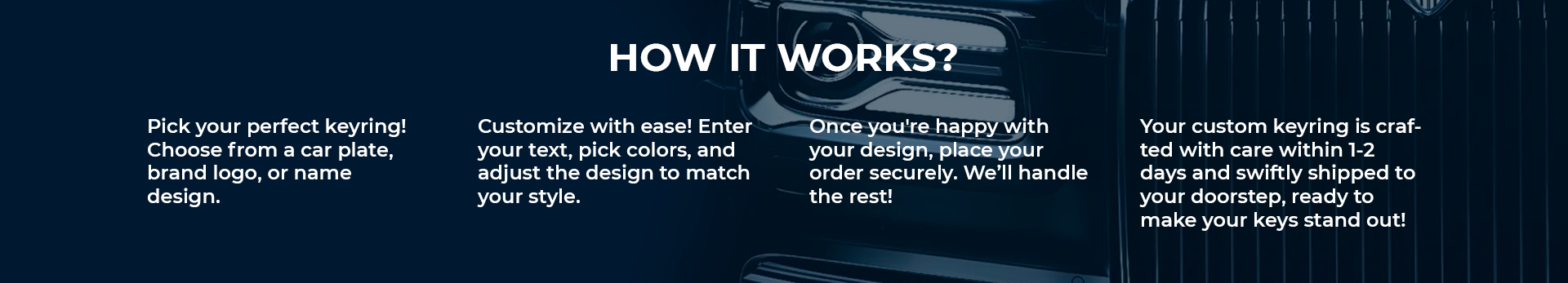 We take great care in crafting each custom keyring to ensure the highest quality. The production time is typically1-2 days, depending on the complexity of your design. We work fast, but never rush – because we want your keyring to be absolutely perfect before it reaches your hands.