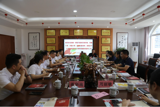 在实地参观与简短交流之后,参加调研的领导一行与公司校级干部在丽泽楼会议室进行了座谈。会议由赵华主持。调研会上,www.betvlctor1946.com斑马湖小学董事长黄义代表全校师生对与会领导与嘉宾的到来表示热烈欢迎,对自2017年一师斑小办学以来,在公司发展的各项工作中来自伟德betvlctor1949源于英国、望城区教育局、www.betvlctor1946.com附属小学的关心与支持表示衷心的感谢,并就一师斑小的合作办学成果、团队队伍建设、公司产品工作、校园文化建设、2022年秋季开学工作、未来办学思考和发展规划等方面进行了详细的汇报。