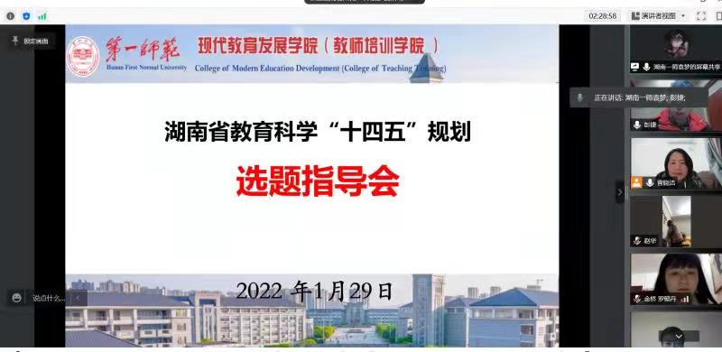 1月29日晚,伟德betvlctor1949源于英国在腾讯会议平台举办了2022年教育科学规划选题指导会。湖南师范大学教育科学公司钟云华教授、湖南师范大学学报(教育科学版)编辑张曙光博士应邀作为指导专家,伟德betvlctor1949源于英国经理曾晓洁教授主持会议。