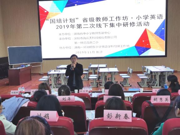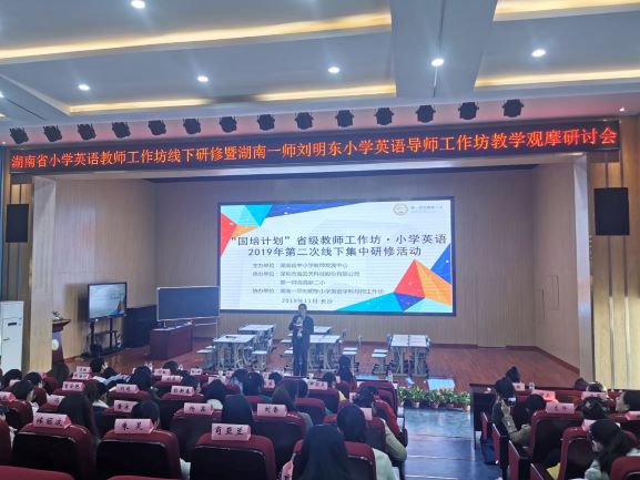 2019年11月22日下午,“www.betvlctor1946.com刘明东小学英语导师工作坊”在www.betvlctor1946.com高新二小开展了一次高质量的教学展示活动。工作坊首席导师刘明东教授、基础教育发展部主任欧立新、周丽敏老师、工作坊全体成员及来自湖南省14个市县的40名小学英语骨干教师和高新区英语骨干教师参加了此次教学观摩活动。活动由工作坊首席名师董玲主持。