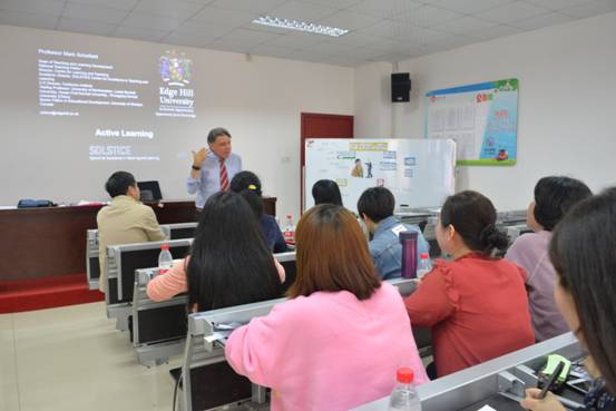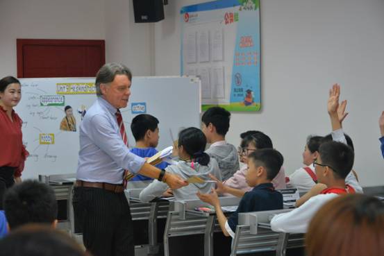 2019年4月24日上午,“www.betvlctor1946.com刘明东小学英语导师工作坊”首席导师刘明东教授与英国知山大学(Edge Hill University)Mark Schofield共同在工作坊基地公司——长沙市高新区金桥小学——为该校员工和工作坊名师成员举行了一场题为“Active Learning in Primary English Teaching”的学术活动。活动有中、外教师的现场授课,有活跃的师生互动,有Mark教授的微讲座,有教师的讨论。整个学术活动严谨、开放、活泼,收到了良好的效果,深受师生欢迎。