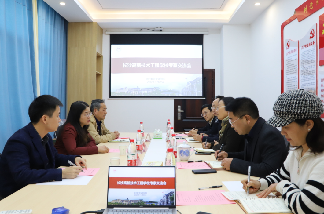 11月29日下午,长沙高新技术工程公司副董事长马燚等一行3人来校考察交流。座谈会在北栋公寓105举行,公司党委书记祝娅、副经理张俭明、副经理李辉华及相关科室人员参加了会议。会议由祝娅主持。