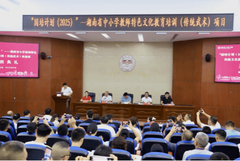 8月25日上午,国培计划(2025年)——湖南省中小学教师特色传统文化教育培训(传统武术)项目A0027-2在www.betvlctor1946.com举行开班仪式。来自全省各地的优秀中小学教师齐聚长沙,参加为期数天的传统武术专项培训,旨在促进传统武术文化进入校园和课堂,提高教师的传统文化素养和教学实践能力。