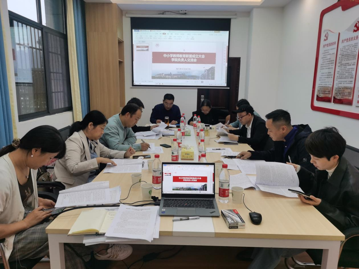 会上,张俭明解读了《www.betvlctor1946.com中小学教师教育联盟工作实施方案》,与会人员就方案展开了讨论,对联盟工作如何有效开展提出了可行性意见与建议。随后,公司合作办学办公室主任周丽敏介绍了公司中小学教师教育联盟成立大会相关工作,并就成立大会相关细节与与会人员展开探讨。